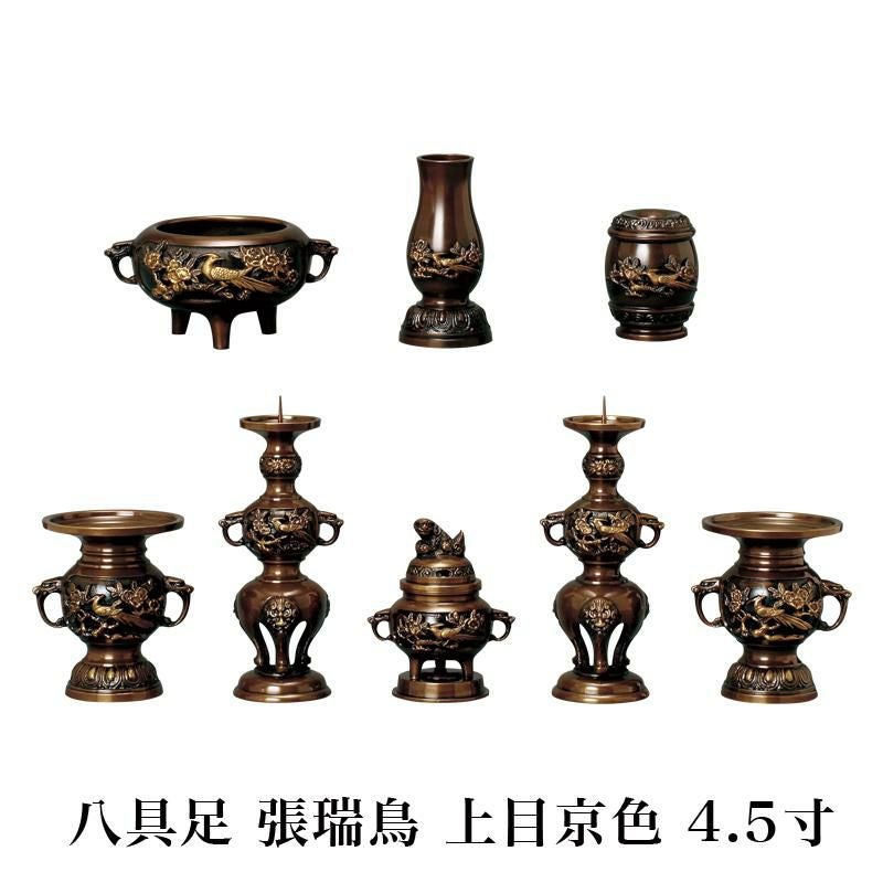 仏具 セット 【八具足】 張瑞鳥模様 上目京色 4.5寸 / 高級 仏壇仏具