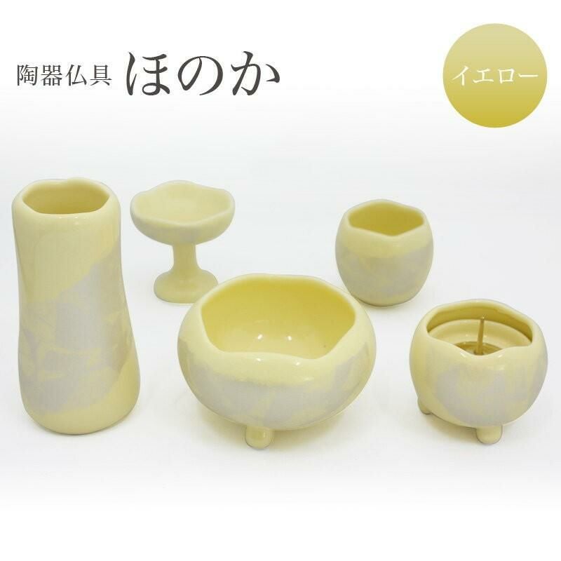 仏具 5点セット 陶器 仏具 「ほのか」中サイズ(カナリアイエロー) 5具足セトモノ モダン 仏壇