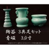仏具 3点セット 陶器 仏具 「青磁無地」3寸 3具足 セトモノ 仏壇 花立て 香炉 ろうそく立て 火立て 燭台 仏具付き 仏具セット