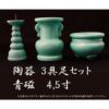 仏具 3点セット 陶器 仏具 「青磁無地」4.5寸 3具足 セトモノ 仏壇 花立て 香炉 ろうそく立て 火立て 燭台 仏具付き 仏具セット