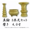 仏具 3点セット 銅器仏具 「磨き」4寸 3具足 真鍮製 仏壇 花立て 香炉 ろうそく立て 火立て 燭台 仏具付き 仏具セット