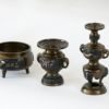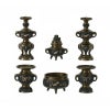 仏具 セット 【六具足】 花鳥型 黒光色 4寸仏壇 花立て 香炉 飾り香炉 ろうそく立て 仏具付き モダン 仏具セット