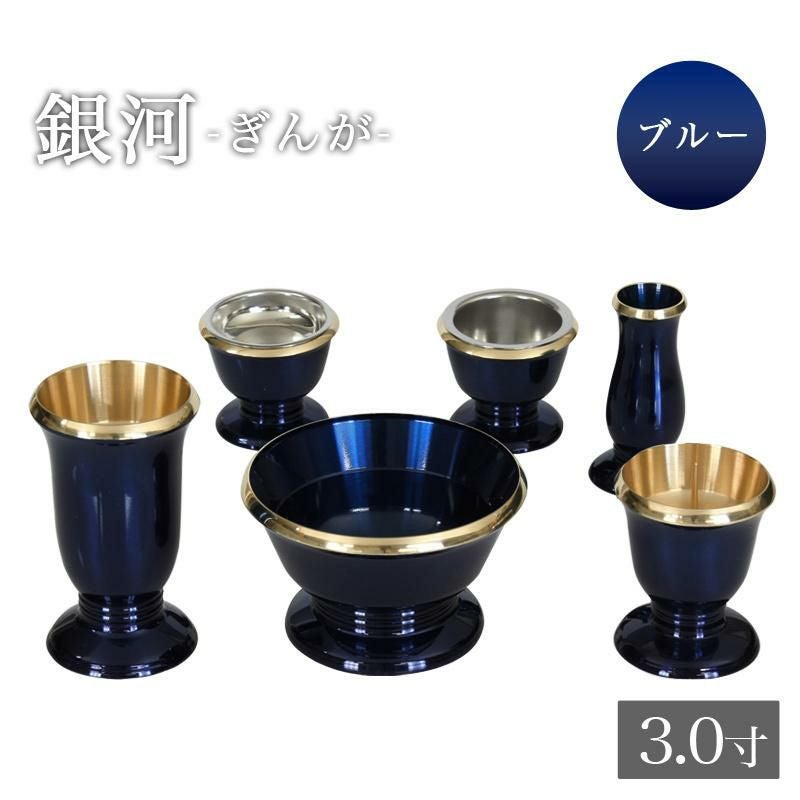 仏具 6点セット 真鍮製 仏具 「銀河」 3.0寸 ブルー 6具足 想々型 花立て 香炉 燭台 火立て 仏器 茶器 仏具 モダン