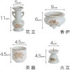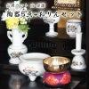 陶器5点(香炉・火立て・花立て・茶器・仏器)に国産おリン3点(おりん・りん棒・りん布団)を付けたお得なセットです。