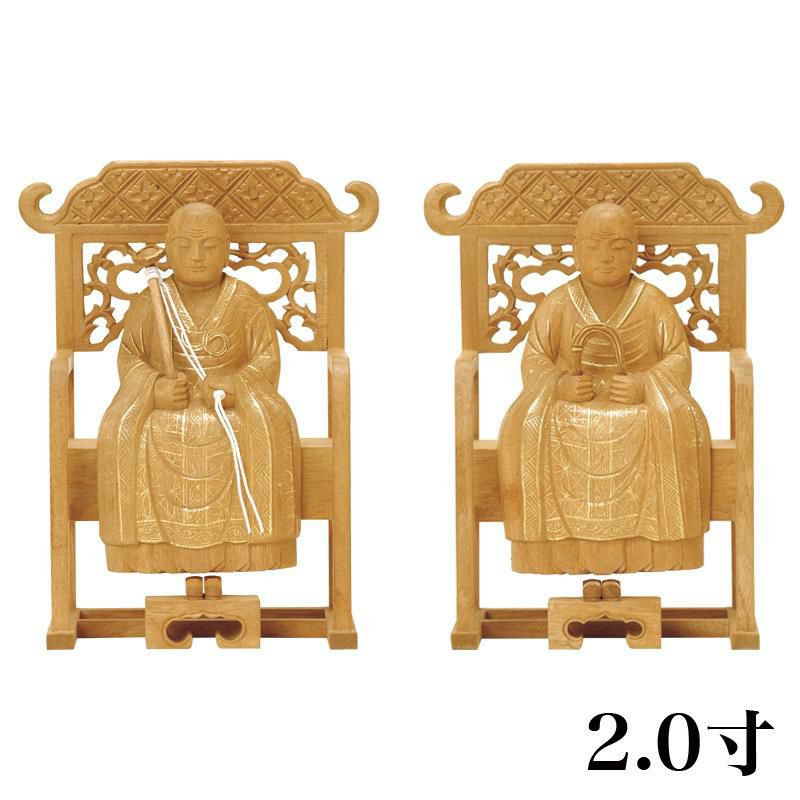 仏像 【楠木地彫】 承陽大師・常済大師(高祖・太祖) 金泥書 2.0寸 (高さ:140mm)