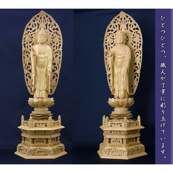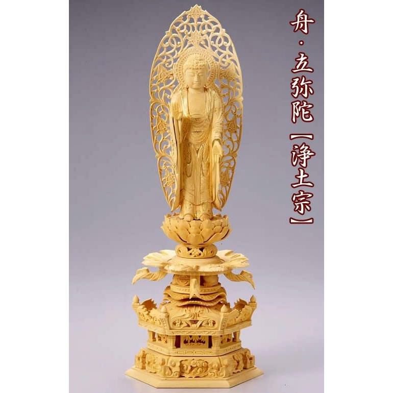 他の画像を見る 総木製仏像 職人による手彫り仏像 仏像 【総ツゲ製】 六角ケマン台座 6寸(高さ:435mm) 「舟立弥陀」 木彫 浄土宗 高さカテゴリ:400mm~ 価格 ¥ 71,700 税込 カートに入れる お気に入りに登録する (0)