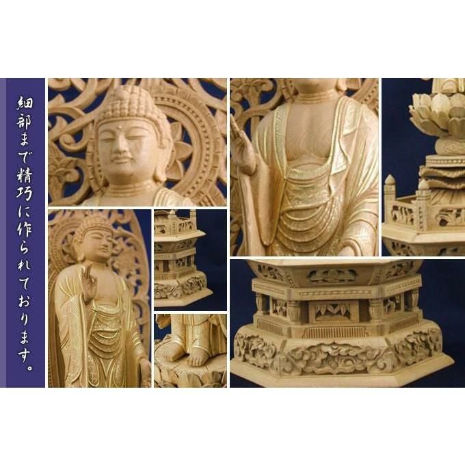 他の画像を見る 総木製仏像 職人による手彫り仏像 仏像 【白木製】【金泥書き】 六角ケマン台座 5寸(高さ:385mm) 「舟立弥陀」 木彫 浄土宗 価格 ¥ 34,100 税込 詳細を見る お気に入りに登録する (0)