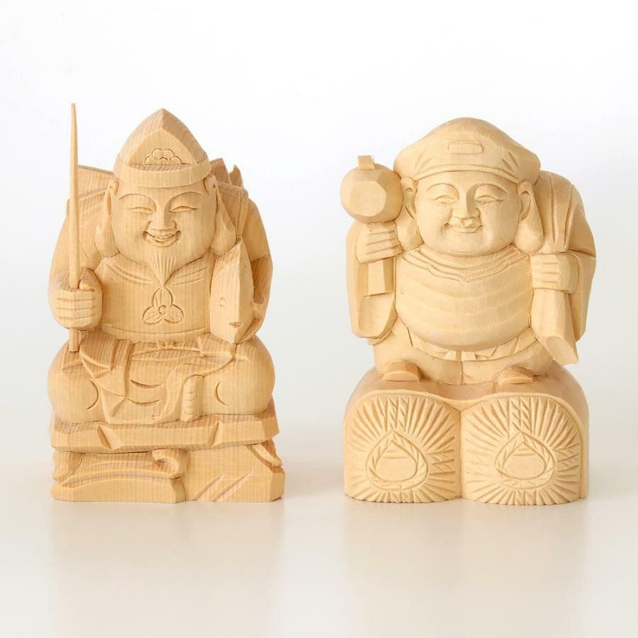 他の画像を見る 総木製仏像 職人による手彫り仏像 仏像 【総白木】 恵比寿・大黒天 台付 3.5寸 木彫 七福神 えびす 仏壇 仏具 価格 ¥ 36,100 税込 詳細を見る お気に入りに登録する (0)