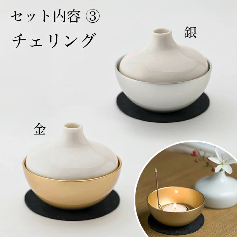 他の画像を見る 仏壇を置かない方におすすめ!お洒落な手元供養セット インテリア仏具 チェリング3点 【シルバー】 (花立て・香炉・火立て)セット 仏具 ゆうりん おりん 国産 日本製 ミニ かわいい 山口久乗 価格 ¥ 12,600 税込 カートに入れる お気に入りに登録する (0)