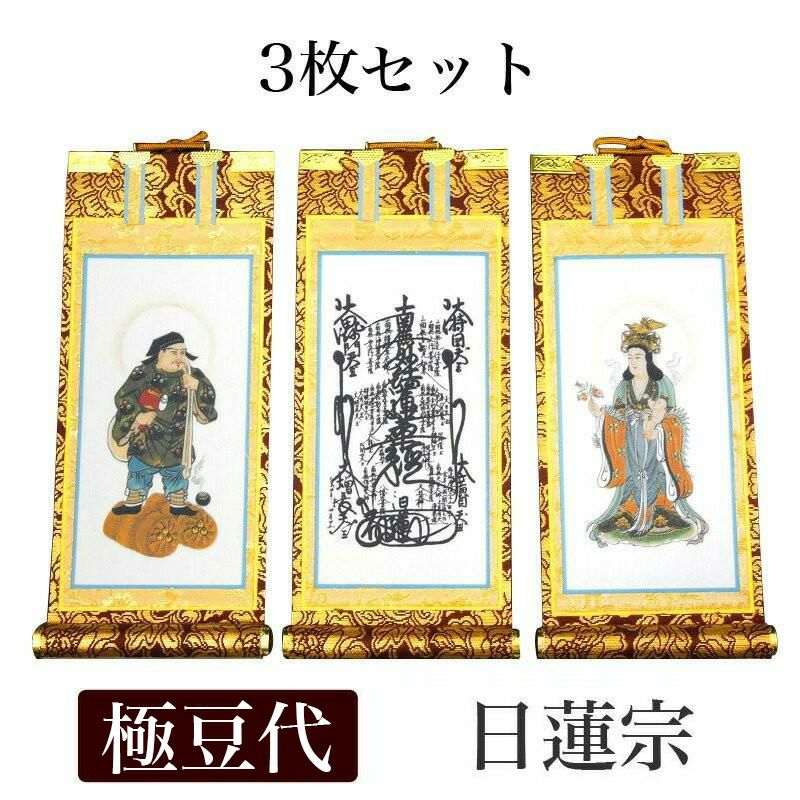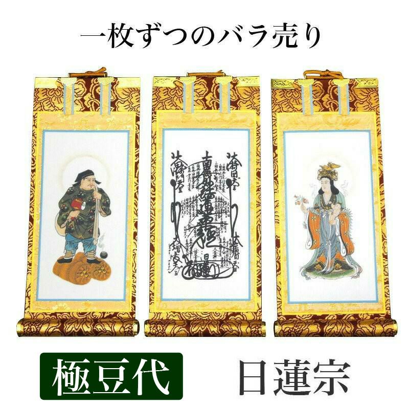 他の画像を見る ★紋鋲プレゼント!★一番人気の掛軸 掛け軸 手書き風掛軸 「3枚セット」 日蓮宗 極豆代(高さ19cm) 仏具 掛軸 価格 ¥ 12,600 税込 詳細を見る お気に入りに登録する (0)