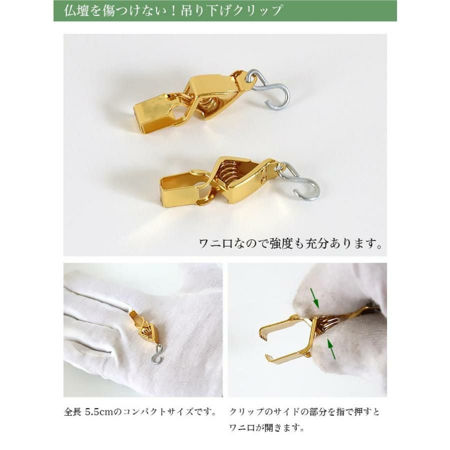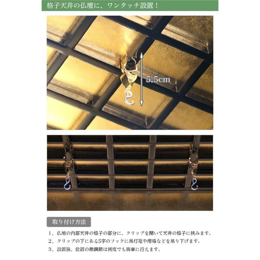 吊灯篭や瓔珞・幢幡など仏壇内の吊り下げにワンタッチで設置可能!ワニ口なので強度も充分あります。