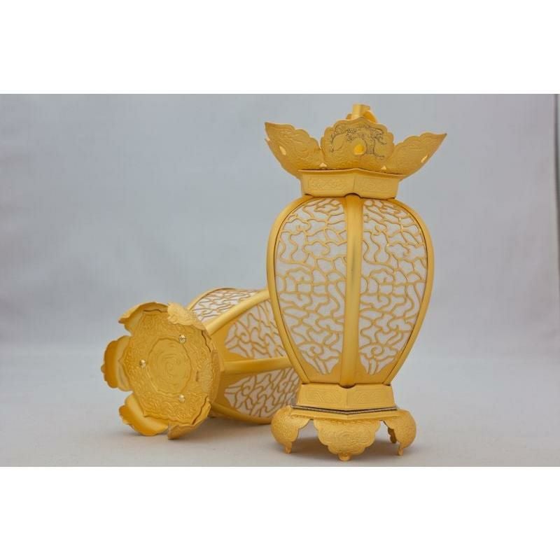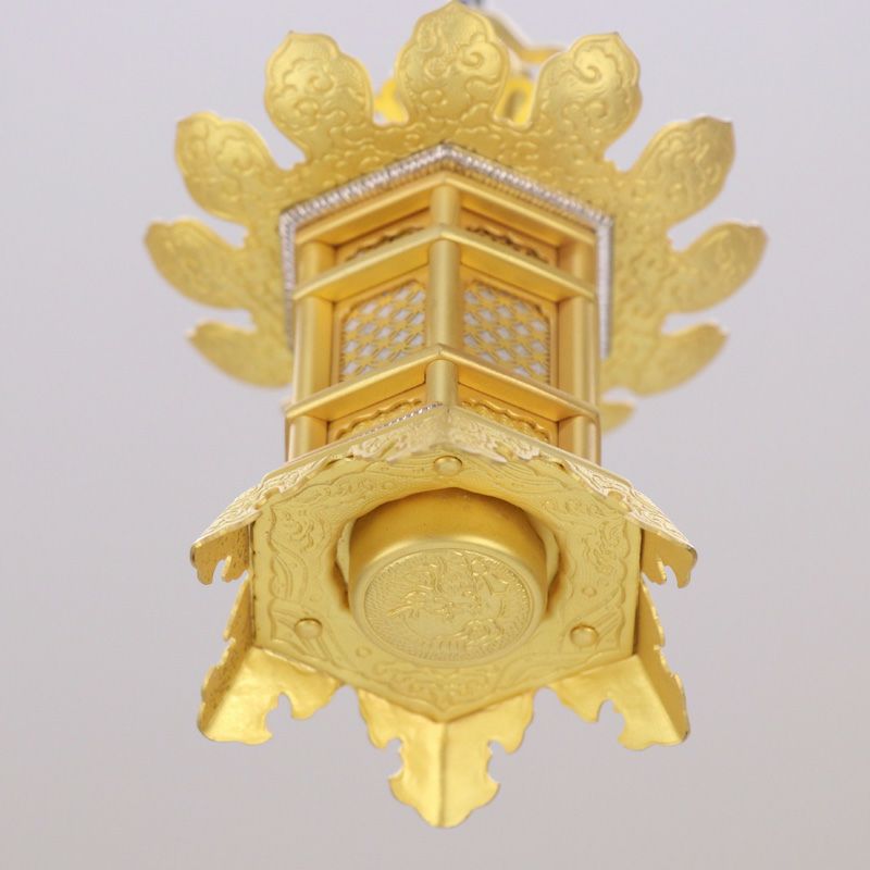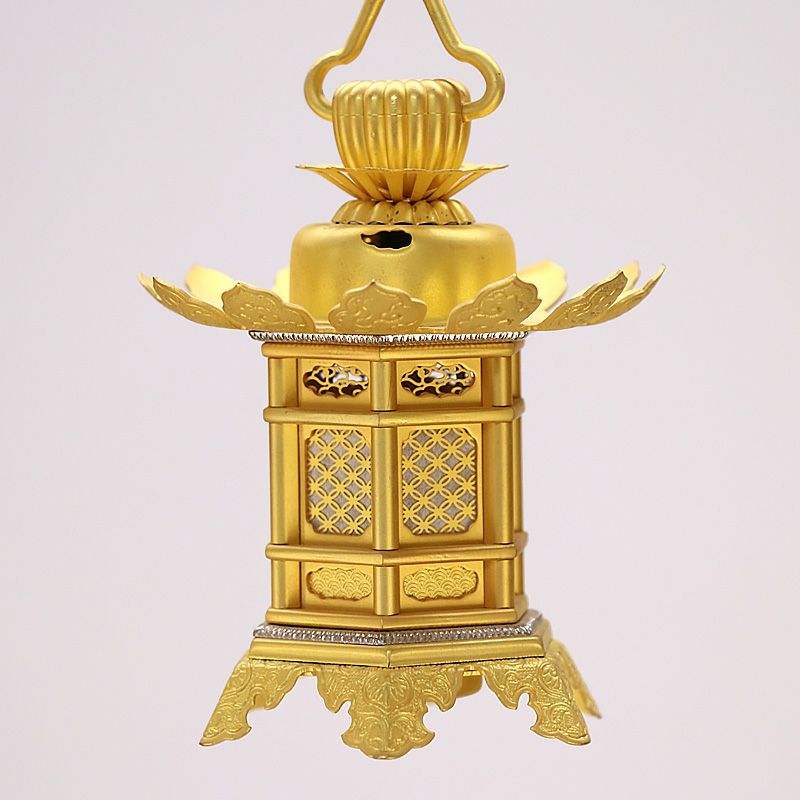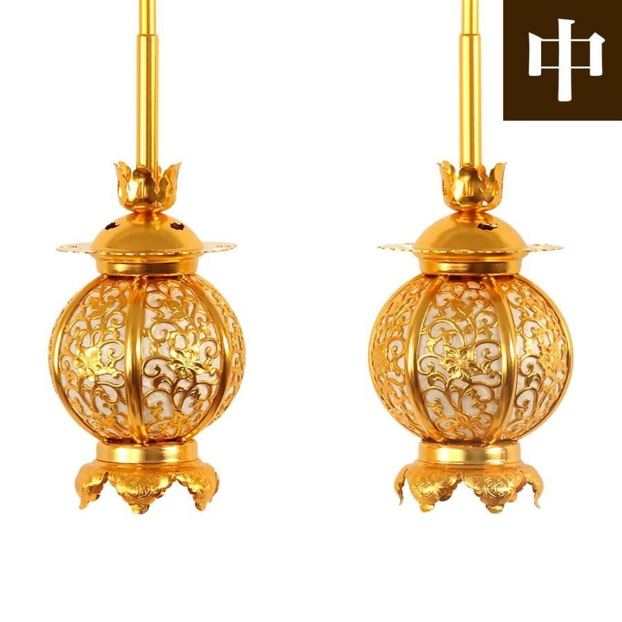 他の画像を見る ご本尊やお仏壇内部を明るく照らします。 吊灯籠(吊り灯篭) 真鍮 雲透し【金メッキ】 中 直径 9cm 1対 仏具灯篭(とうろう)灯籠 燈籠 価格 ¥ 17,200 税込 詳細を見る お気に入りに登録する (0)