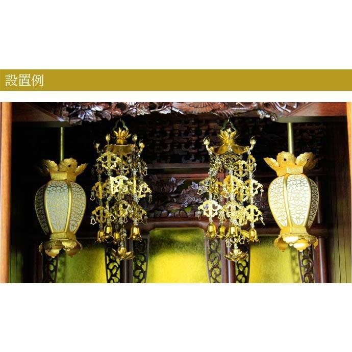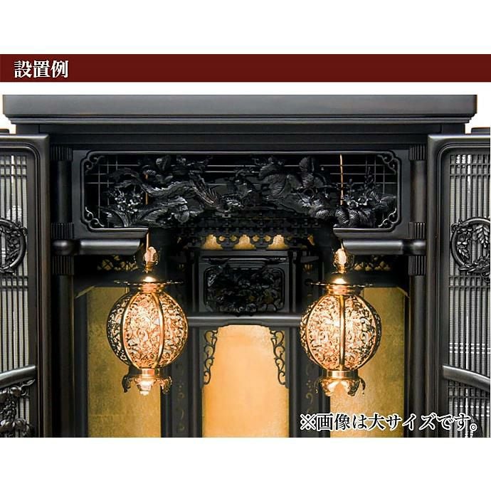 他の画像を見る ご本尊やお仏壇内部を明るく照らします。 吊灯籠(吊り灯篭) 真鍮 利休型(利久形) 中 直径 8cm 1対 [消し金メッキorイブシ] 仏具灯篭(とうろう)灯籠 燈籠 価格 ¥ 35,400 税込 詳細を見る お気に入りに登録する (0)