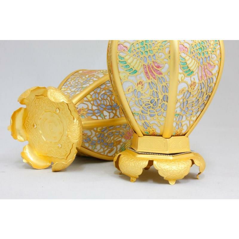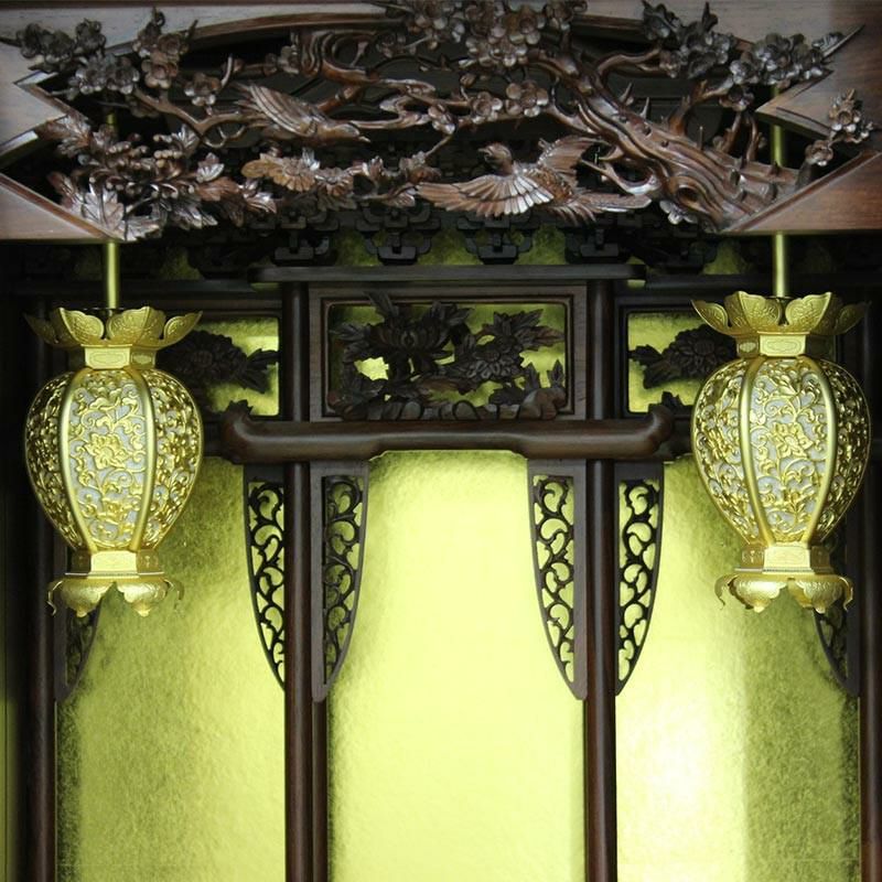 他の画像を見る ご本尊やお仏壇内部を明るく照らします。 吊灯籠(吊り灯篭) 真鍮 鳳凰透し彩色入り【消し金メッキorイブシ仕上げ】 大 直径9.5cm 1対 仏具灯篭 とうろう 燈籠 仏壇 仏具 飾り 価格 ¥ 33,800 税込 詳細を見る お気に入りに登録する (0)