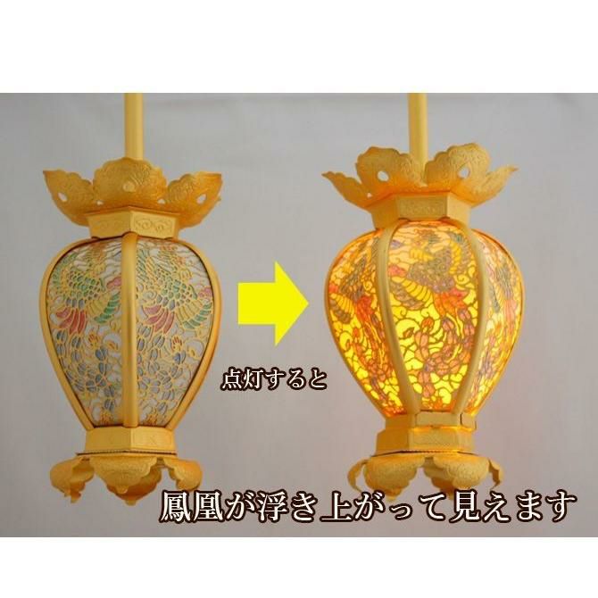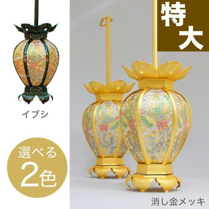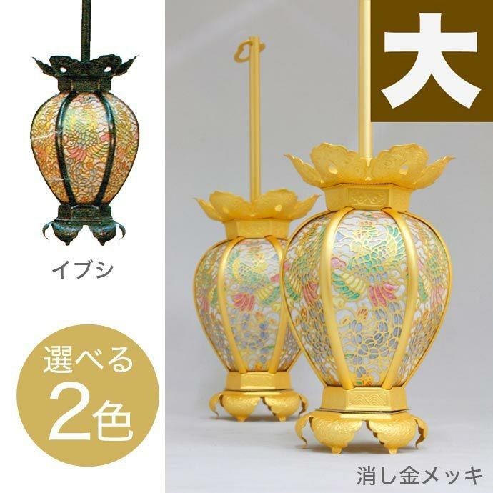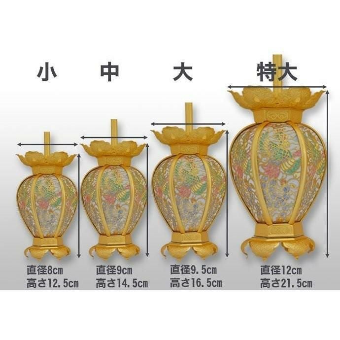 他の画像を見る ご本尊やお仏壇内部を明るく照らします。 吊灯籠(吊り灯篭) 真鍮 鳳凰透し彩色入り【消し金メッキorイブシ仕上げ】 中 直径 9cm 1対 仏具灯篭 とうろう 燈籠 仏壇 仏具 飾り 価格 ¥ 27,700 税込 詳細を見る お気に入りに登録する (0)