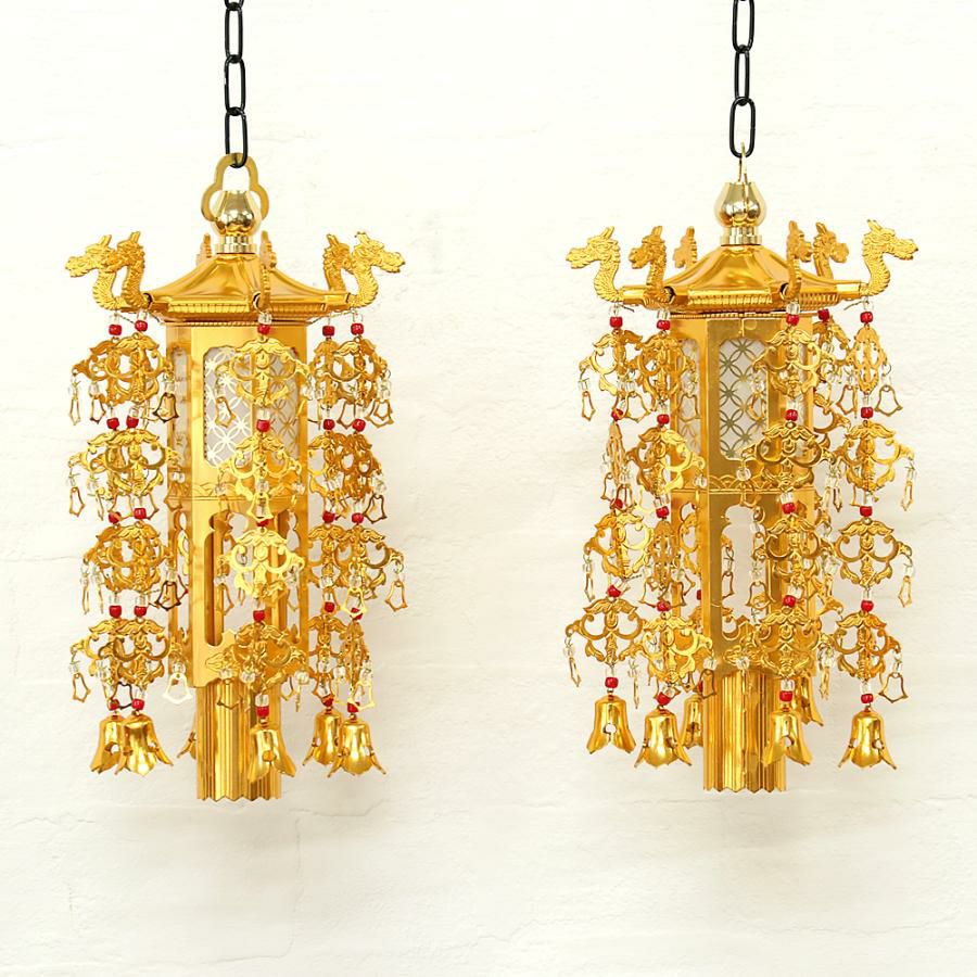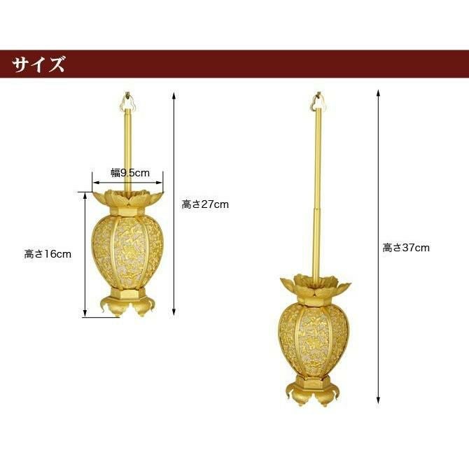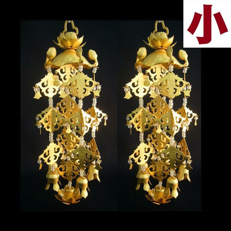 他の画像を見る ご本尊やお仏壇内部を明るく照らします。 吊燈籠(吊り灯篭) 銅地 雲竜型【消金メッキorイブシ仕上げ】 小 直径7cm 1対 仏具灯篭 とうろう 燈籠 価格 ¥ 28,300 税込 詳細を見る お気に入りに登録する (0)