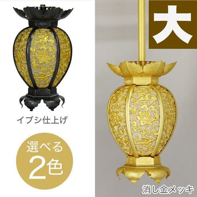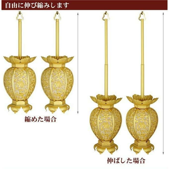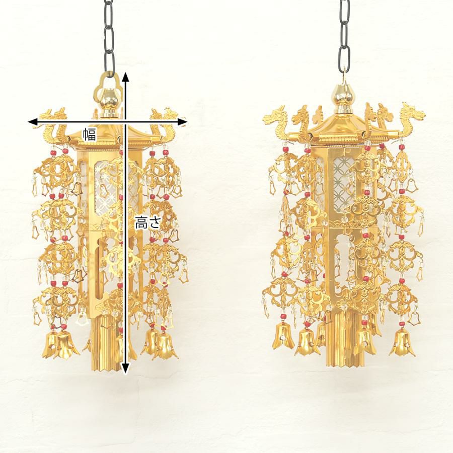 他の画像を見る ご本尊やお仏壇内部を明るく照らします。 吊燈籠(吊り灯篭) 銅地 雲竜型【消金メッキorイブシ仕上げ】 特大 直径12.5cm 1対 仏具灯篭 とうろう 燈籠 価格 ¥ 56,100 税込 詳細を見る お気に入りに登録する (0)