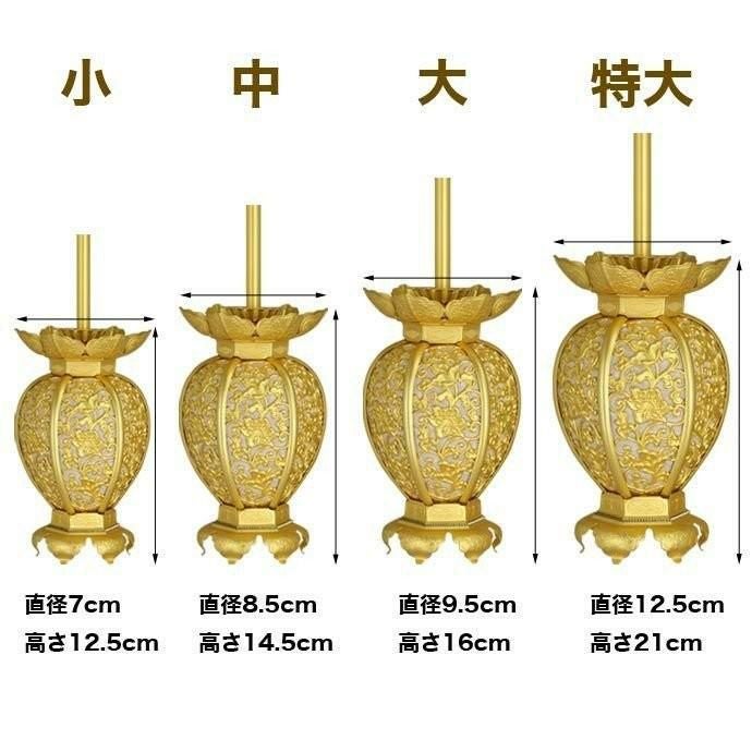 他の画像を見る 浄土真宗 東用の灯篭です。ご本尊やお仏壇内部を明るく照らします。 神前灯籠 アルミ丁足(浄土真宗 東) 2.5寸 直径13cm 1対 仏具灯篭(とうろう)灯籠 燈籠 価格 ¥ 12,700 税込 詳細を見る お気に入りに登録する (0)