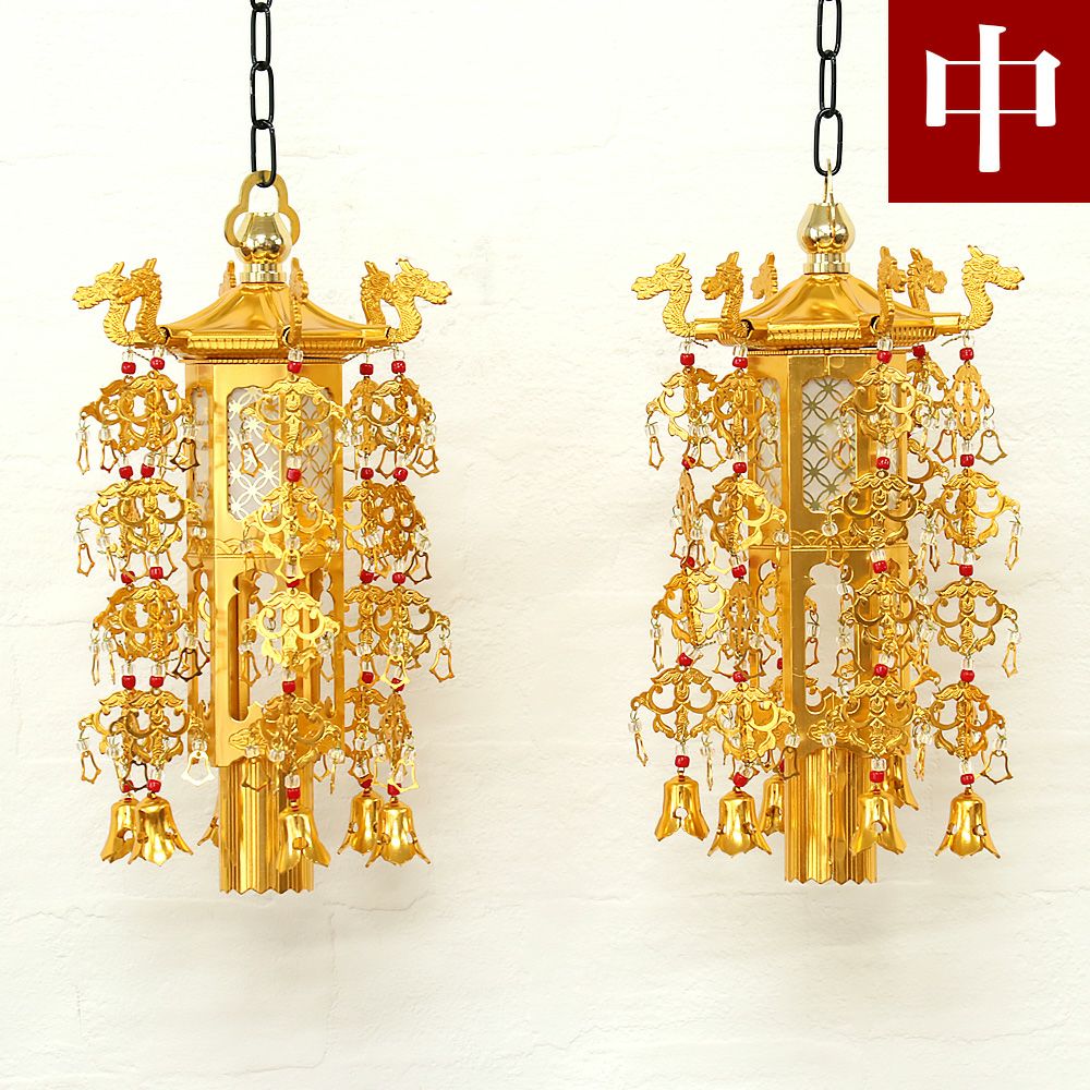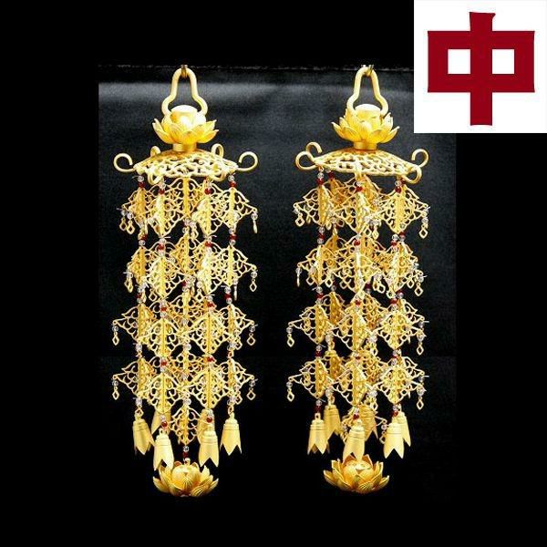 他の画像を見る ご本尊やお仏壇内部を明るく照らします。 吊燈籠(吊り灯篭) 銅地 雲竜型【消金メッキorイブシ仕上げ】 中 直径8.5cm 1対 仏具灯篭 とうろう 燈籠 価格 ¥ 32,700 税込 詳細を見る お気に入りに登録する (0)