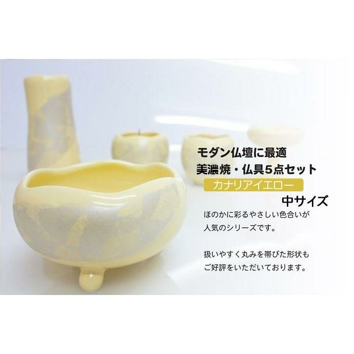 他の画像を見る 陶器仏具 『ほのか』中サイズ(カナリアイエロー) 5具足 仏具 5点セット 陶器 仏具 「ほのか」中サイズ(カナリアイエロー) 5具足セトモノ モダン 仏壇 価格 ¥ 8,250 税込 カートに入れる お気に入りに登録する (0)