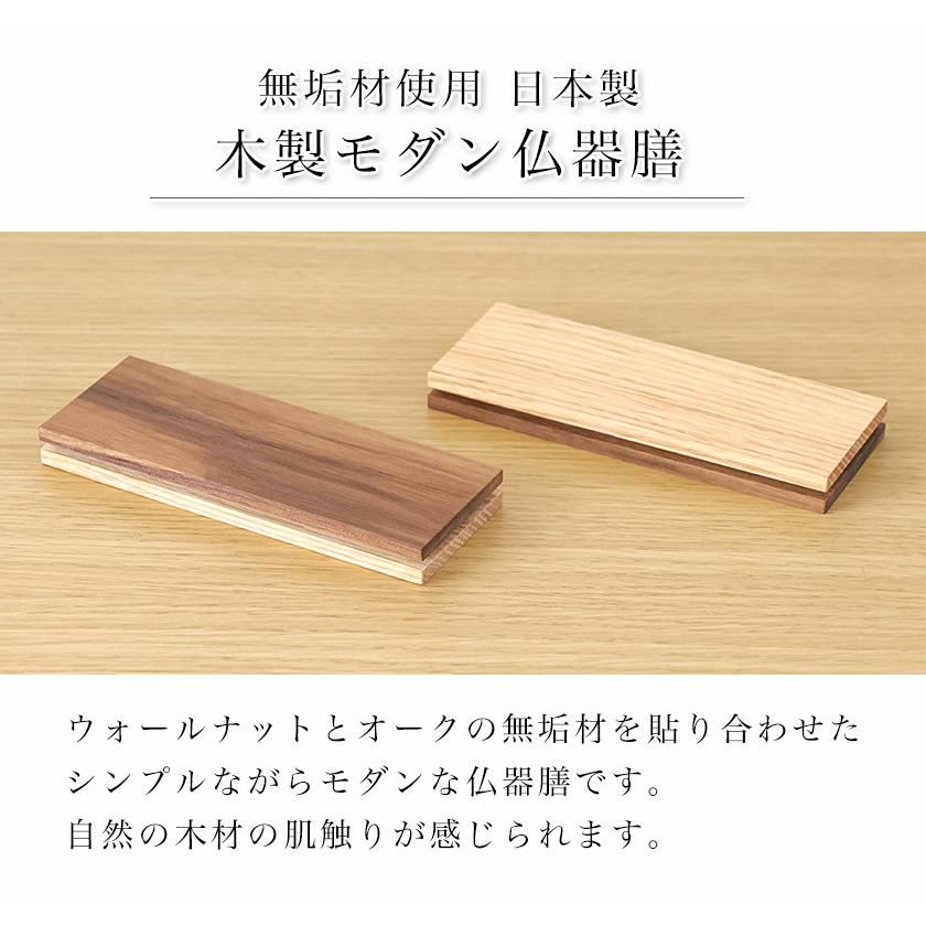 他の画像を見る 国産モダン仏器膳 リバーシブルとしてお使い頂けます メール便送料無料 木製 無垢材 モダン仏器膳 4.5寸 幅13.5cm ウォールナット/オーク (リバーシブル) 仏器台 仏壇 仏具 日本製 価格 ¥ 3,280 税込 詳細を見る お気に入りに登録する (0)