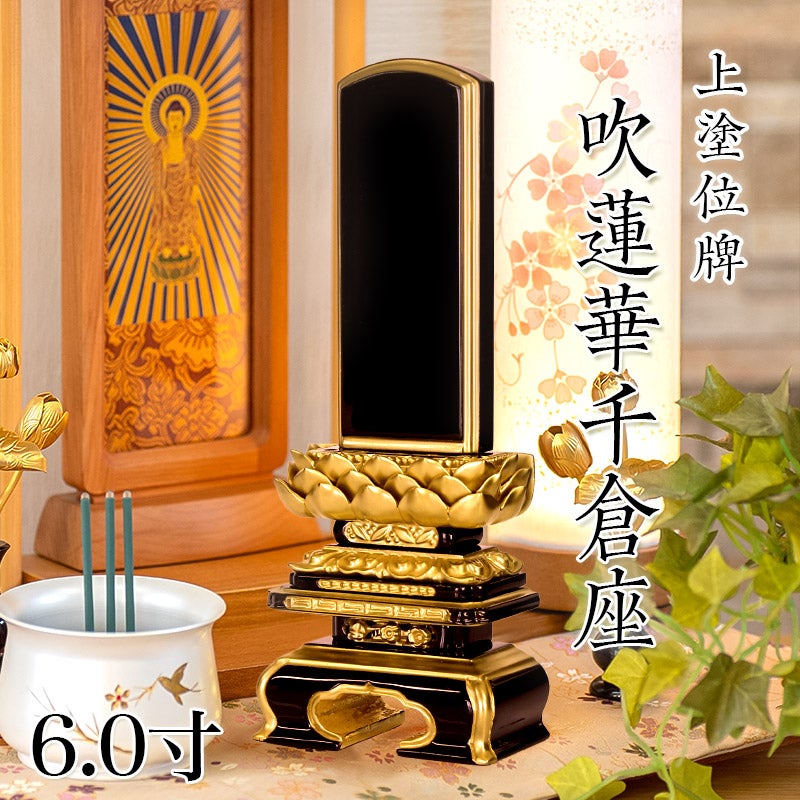 位牌 上塗 「面粉 吹蓮華千倉座」 6.0寸(高さ:29cm)