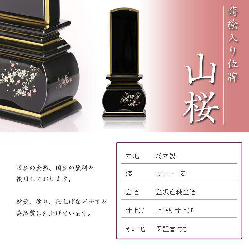 他の画像を見る 位牌 モダン「山桜」5.0寸 送料無料 位牌 モダン 「山桜」 蒔絵入 5.0寸(高さ:22.5cm) 花位牌 上塗位牌 漆塗り 本位牌 塗り位牌 モダン 文字 優雅 名入れ 価格 ¥ 62,000 税込 詳細を見る お気に入りに登録する