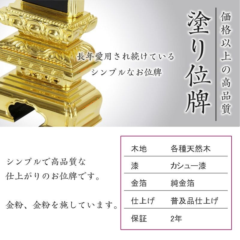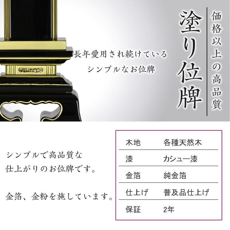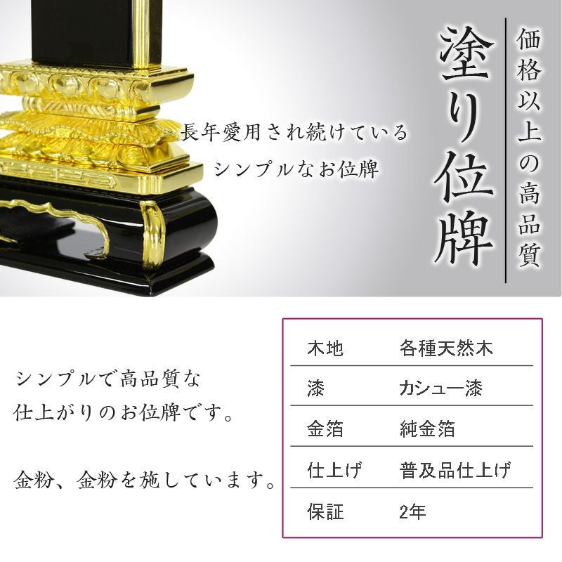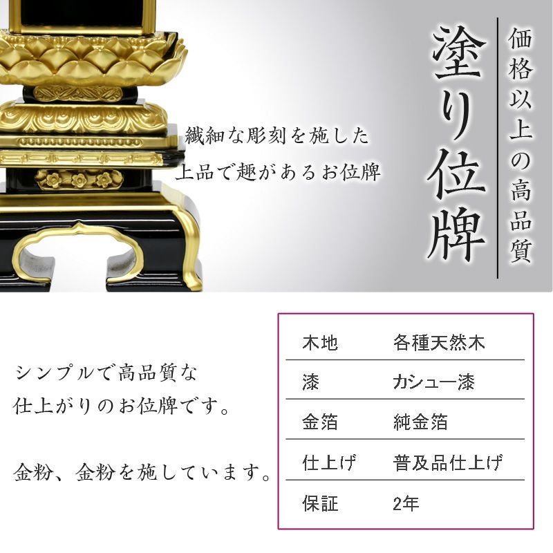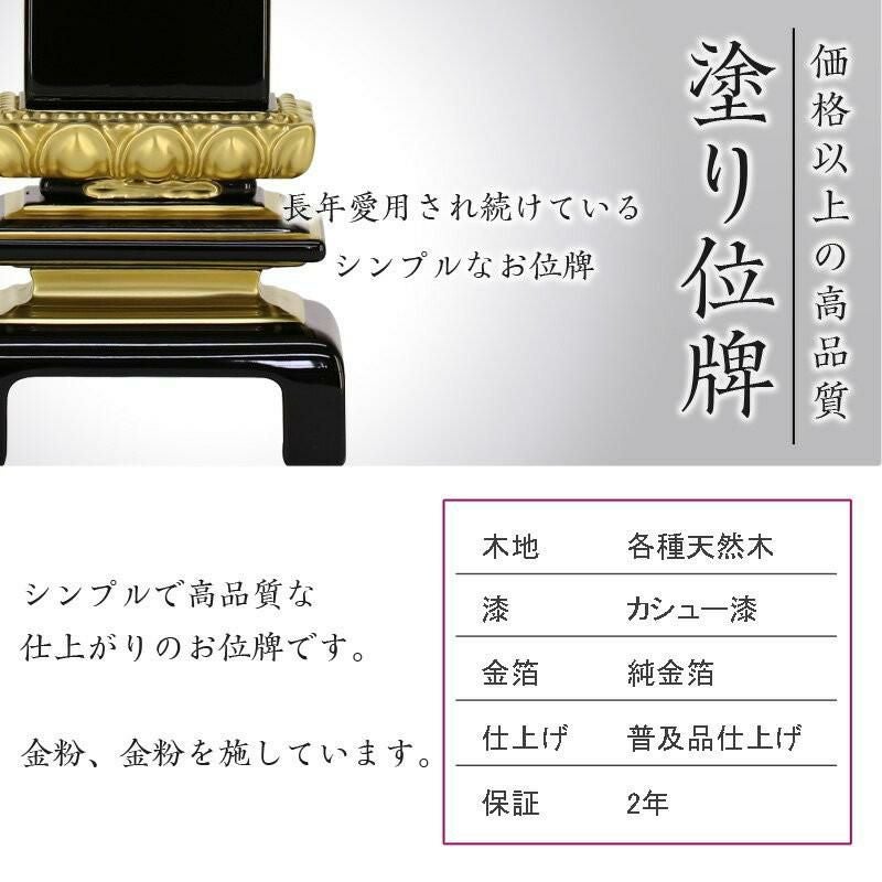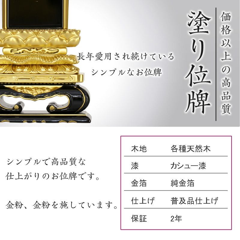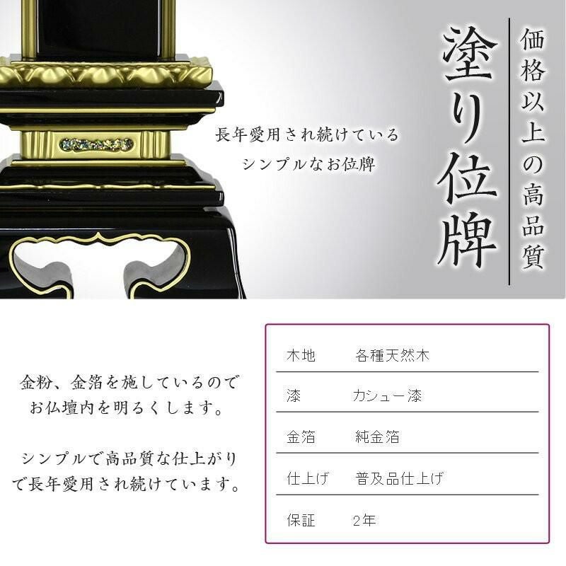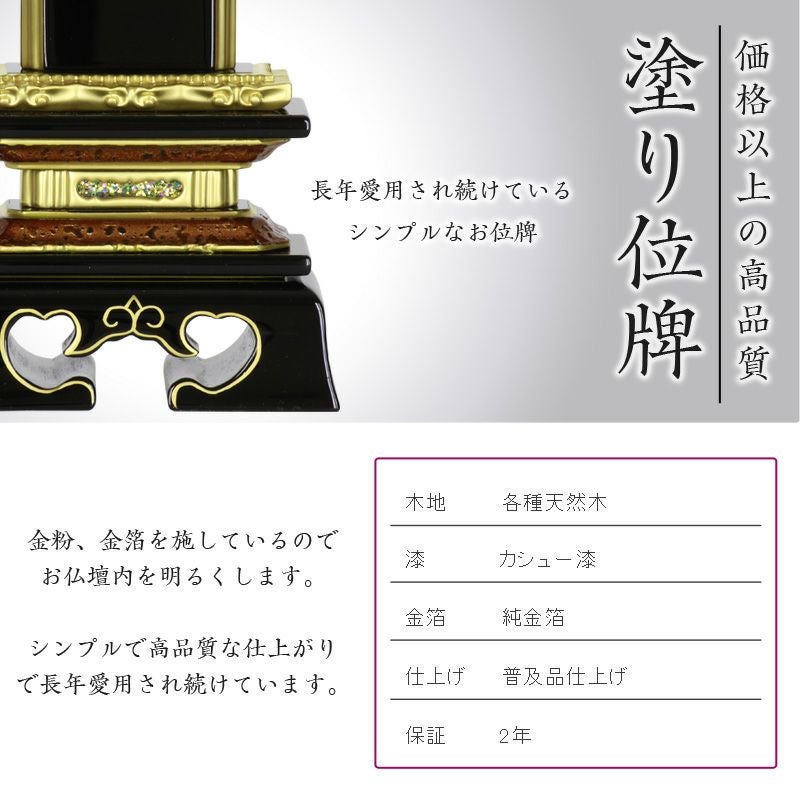 他の画像を見る 位牌 春日型 伝統的でシンプル 人気の位牌 全宗派対応 位牌 春日 7.0寸 本位牌 黒塗 文字 仏具 金箔 仏壇 位牌 名入れ 価格 ¥ 32,000 税込 詳細を見る お気に入りに登録する