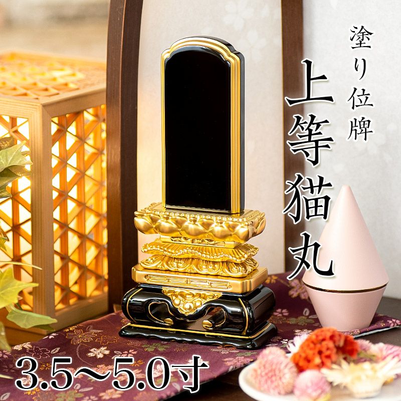 他の画像を見る 位牌 上等金粉猫丸 位牌 上等猫丸 3.5寸・4.0寸・4.5寸・5.0寸 本位牌 黒塗 文字 仏具 仏壇 小さい 4寸 5寸 名入れ 価格 ¥ 24,800 税込 〜 価格 ¥ 税込 在庫切れ 詳細を見る お気に入りに登録する