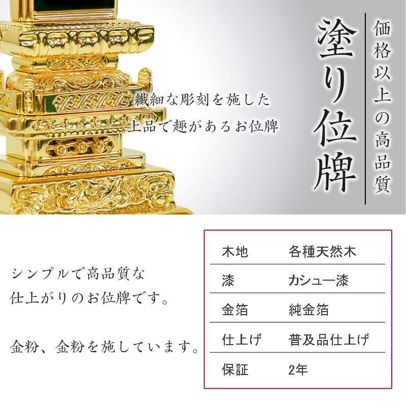 他の画像を見る 位牌 三方金千倉 49日 四十九日 位牌 三方金千倉 3.0寸・3.5寸・4.0寸・4.5寸・5.0寸 本位牌 黒塗 文字 仏具 金箔 仏壇 小さい 4寸 5寸 名入れ 価格 ¥ 15,800 税込 〜 価格 ¥ 税込 詳細を見る お気に入りに登録する