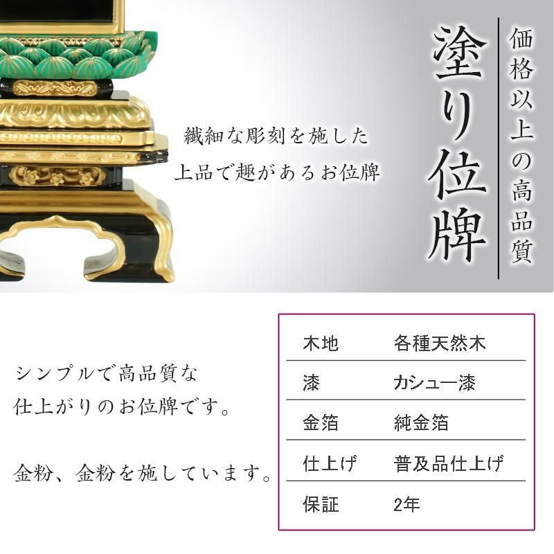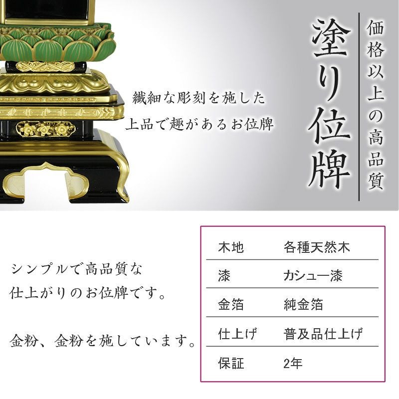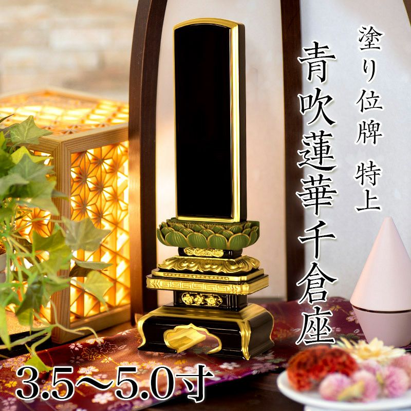 他の画像を見る 位牌 京型千倉 青吹蓮華 49日 四十九日 位牌 面粉 青吹蓮華千倉座 3.5寸・4.0寸・4.5寸・5.0寸・5.5寸・6.0寸 78-7 本位牌 板位牌 黒塗 文字 仏壇 名入れ 価格 ¥ 44,800 税込 〜 価格 ¥ 税込 詳細を見る お気に入りに登録する