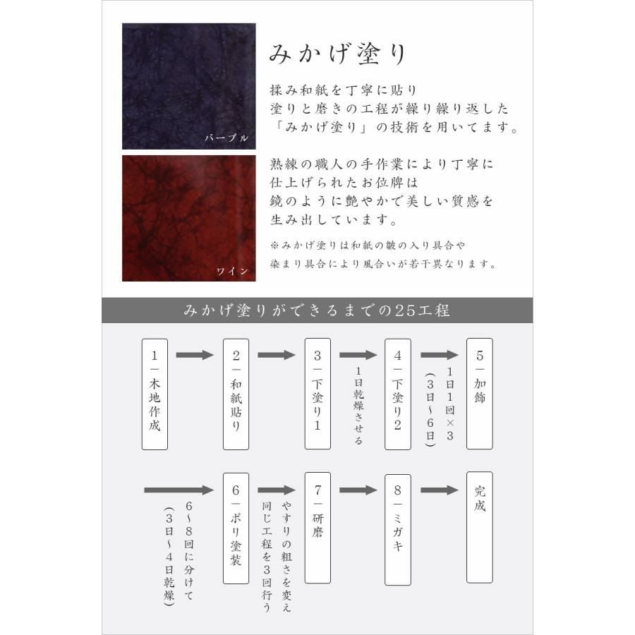 他の画像を見る 位牌 吹蓮華極上千倉 49日 四十九日 位牌 面粉 吹蓮華千倉座 5.5寸・6.0寸 本位牌 黒塗 文字 仏具 仏壇 名入れ 価格 ¥ 49,800 税込 〜 価格 ¥ 税込 詳細を見る お気に入りに登録する