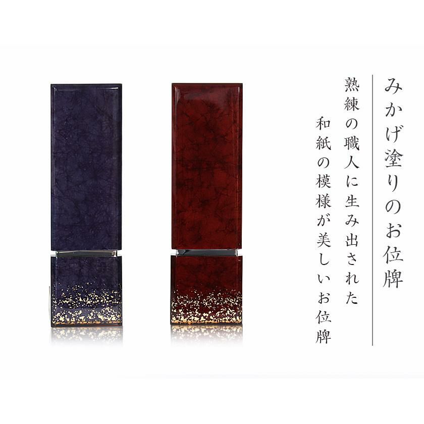 他の画像を見る 4寸 4.5寸 5寸 本体のみ(文字入れを一緒に購入して下さい) 送料無料 塗り位牌 モダン 「黒影&藍彩」 4.0寸・4.5寸・5.0寸美影塗り 藍染位牌 本位牌 板位牌 黒塗 仏具 仏壇 小さい おしゃれ 価格 ¥ 83,600 税込 〜 価格 ¥ 税込 詳細を見る お気に入りに登録する