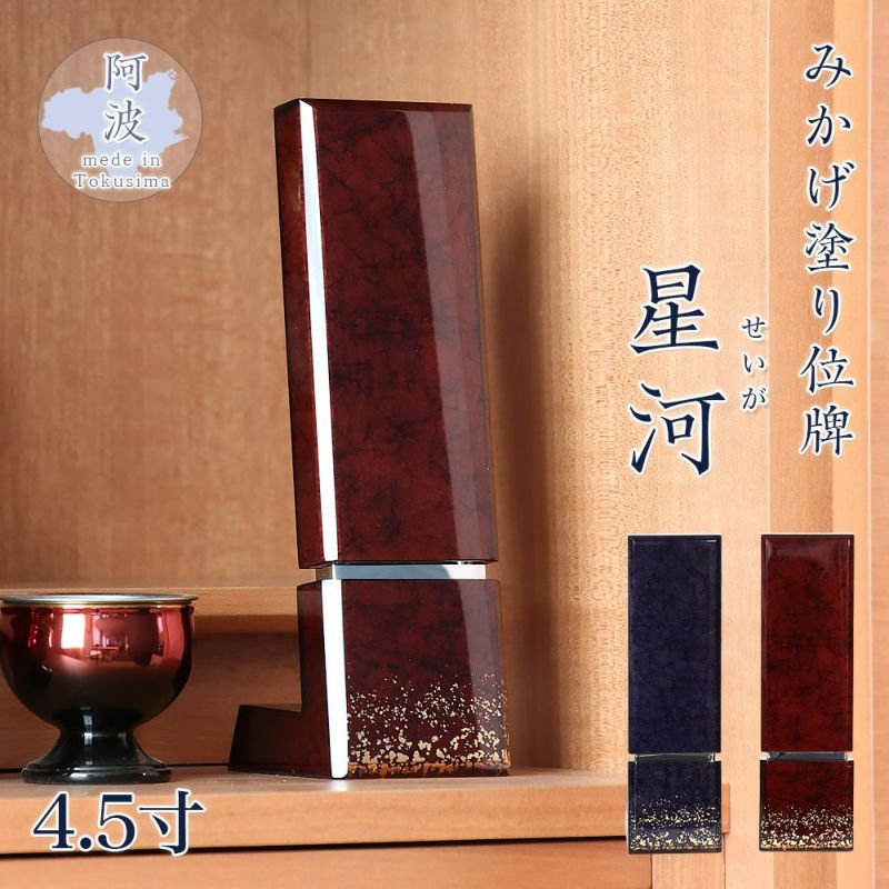 本体のみ(文字入れを一緒に購入して下さい) 送料無料 塗り位牌 モダン 「星河(せいが)」 4.5寸 みかげ塗り 本位牌 板位牌 黒塗 位牌 仏具 仏壇 小さい 名入れ おしゃれ