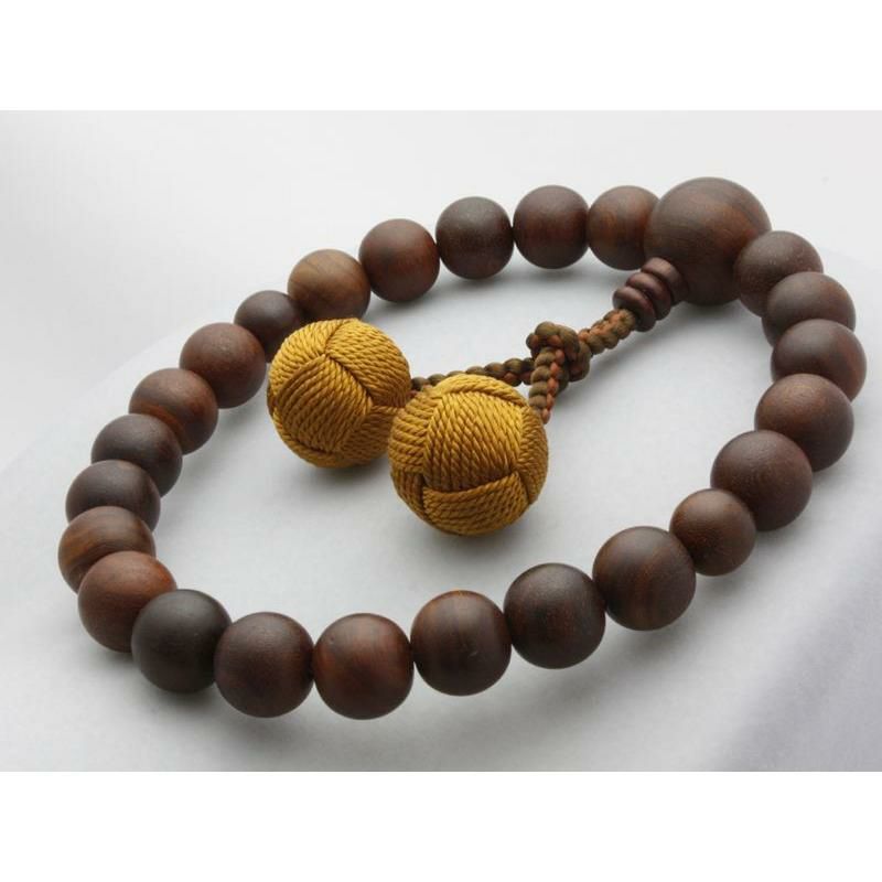 メール便対応 男性用念珠・数珠 紫檀×共仕立 22珠 正絹かがり梵天房 蒲色(M-025)