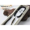木肌そのものの風合いを生かした素挽の木玉と高級感溢れる貴石を組み合わせた御念珠です。六本の紐房は正絹を使用し、高潔な気品漂う御念珠に仕上げました。