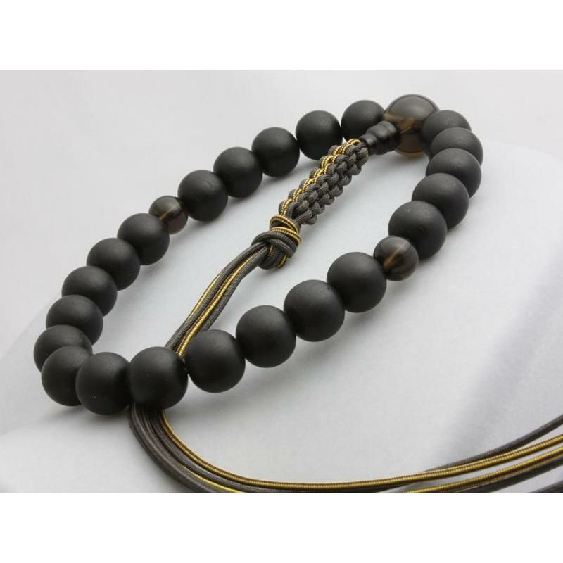 メール便対応 男性用念珠・数珠 片手素挽黒檀×茶水晶 22珠 正絹6本ヒモ房(M-032)