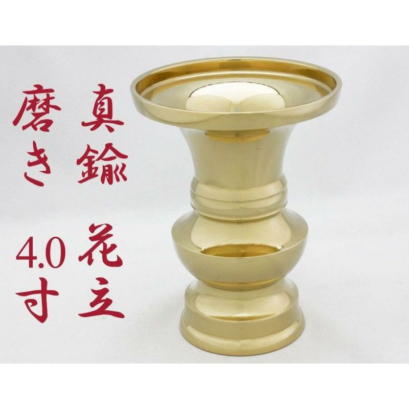 花立て 真鍮 磨き 4寸【仏壇 仏具】