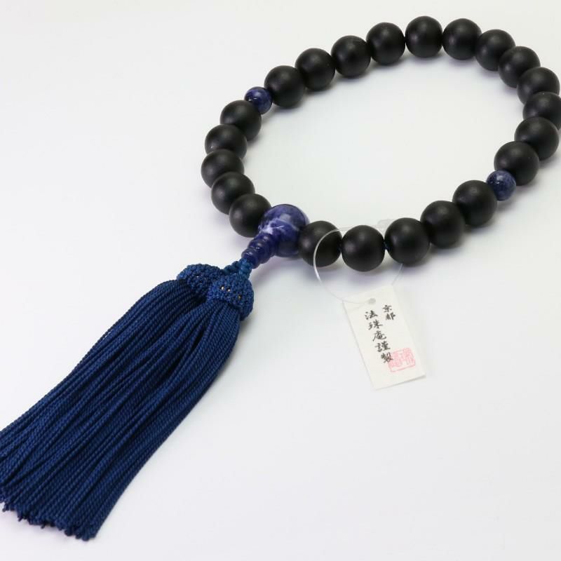 男性用 京念珠・数珠 純黒檀 ソーダライト仕立て 正絹頭付房(KM011)