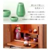 淡い色合いに、陶器の暖かみある素材感と手触りが特徴的です。形も全体的に丸みを帯びていて愛らしいデザインでお勧めの仏具です。
