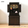 金の模様入り背板や美しい曲線の須弥壇、彫刻入りの勾欄など重厚感にあふれるデザインが特徴です。職人による美しい伝統型の唐木ミニ仏壇です。
