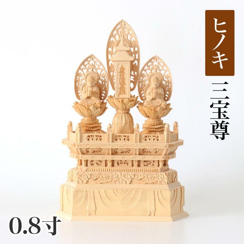 仏像 【桧木(ヒノキ)】 三宝尊 0.8寸(高さ:220mm)