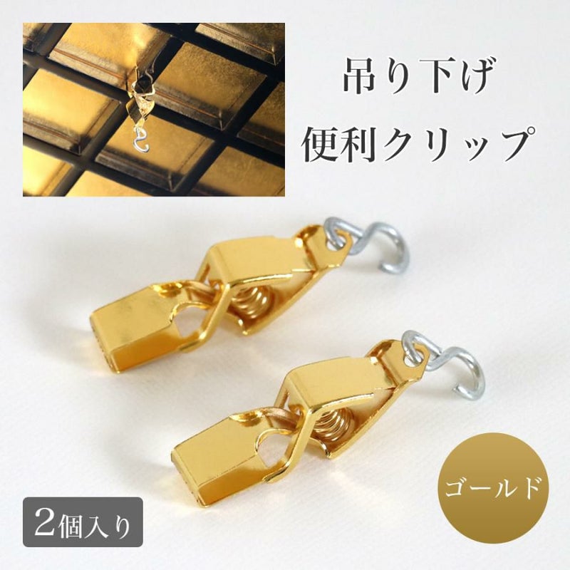【メール便対応】吊り下げ便利クリップ 2個入り【ゴールド色】