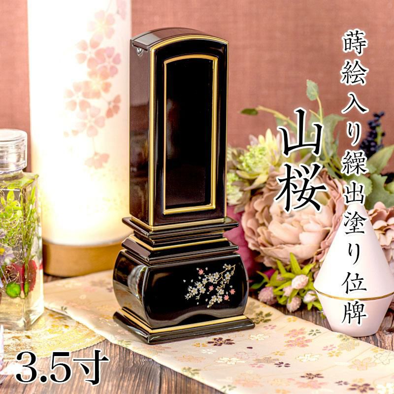 位牌 モダン 蒔絵入り繰出し位牌「山桜(塗)」3.5寸(高さ:17.9cm)