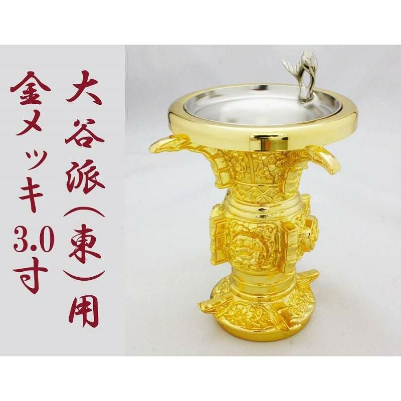 花立て 真鍮 彫り入り金メッキ 3寸【仏壇 仏具】 本山彫り 浄土真宗 東 大谷派