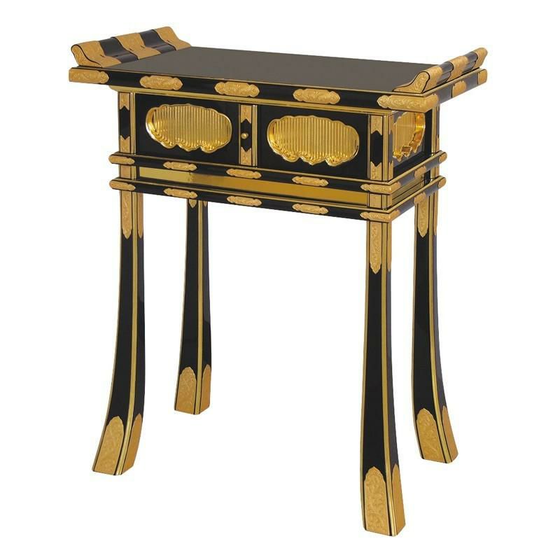 中京型背高経机 筆返し金具付 朱塗or黒塗 天黒面金箔押 2.5尺 (1170-2510) 仏壇 机 仏具 経机 テーブル