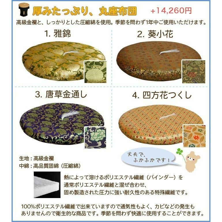 他の画像を見る 360度回転する 優美な幅広椅子(曲録) 「日本製」職人こだわりの仏具 【サイズ・色オーダー可能】 幅広・六角回転曲禄 オーダーメイド 手作り 寺院用椅子 本堂用 寺院仏具 国産 金具 座布団 価格 ¥ 66,530 税込 詳細を見る お気に入りに登録する (0)