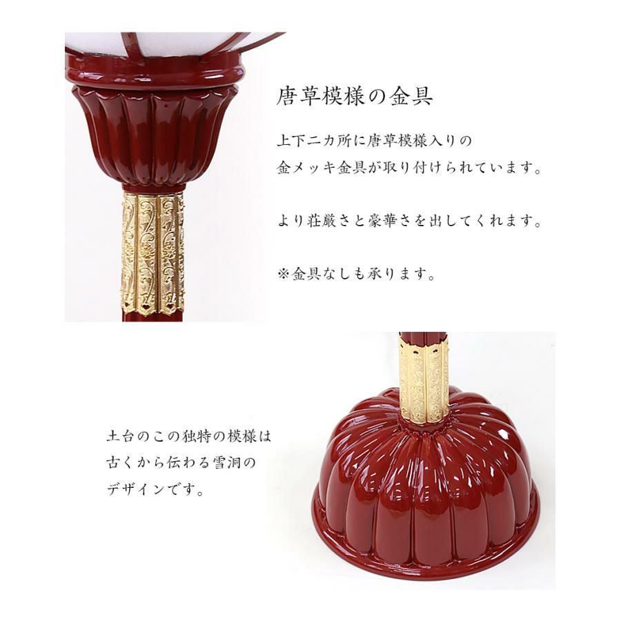 他の画像を見る 【上品な和室の演出にも】 仏具荘厳具の高級雪洞(ボンボリ) 寺院用仏具 職人こだわりの仏具 京錦型ボンボリ 3.5尺 カシュー漆塗り 1対(2台) 電装付き 高さ105cm朱塗り 黒塗 LED お盆用品 寺院仏具 日本製 国産 価格 ¥ 314,600 税込 詳細を見る お気に入りに登録する (0)