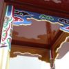 四本の柱に彩色が彩られ、幕板も取り付けられています。