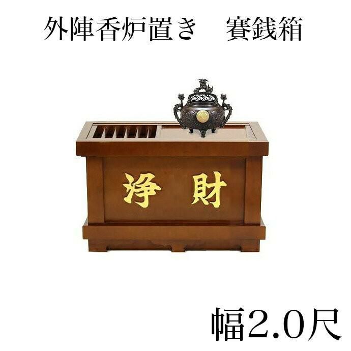 他の画像を見る お寺の本堂でお使いいただけます 木製の強度あるヒバ材使用です 外陣香炉置き 賽銭箱 幅3尺/さい銭箱 お寺用 神社 寺院 価格 ¥ 229,900 税込 詳細を見る お気に入りに登録する (0)